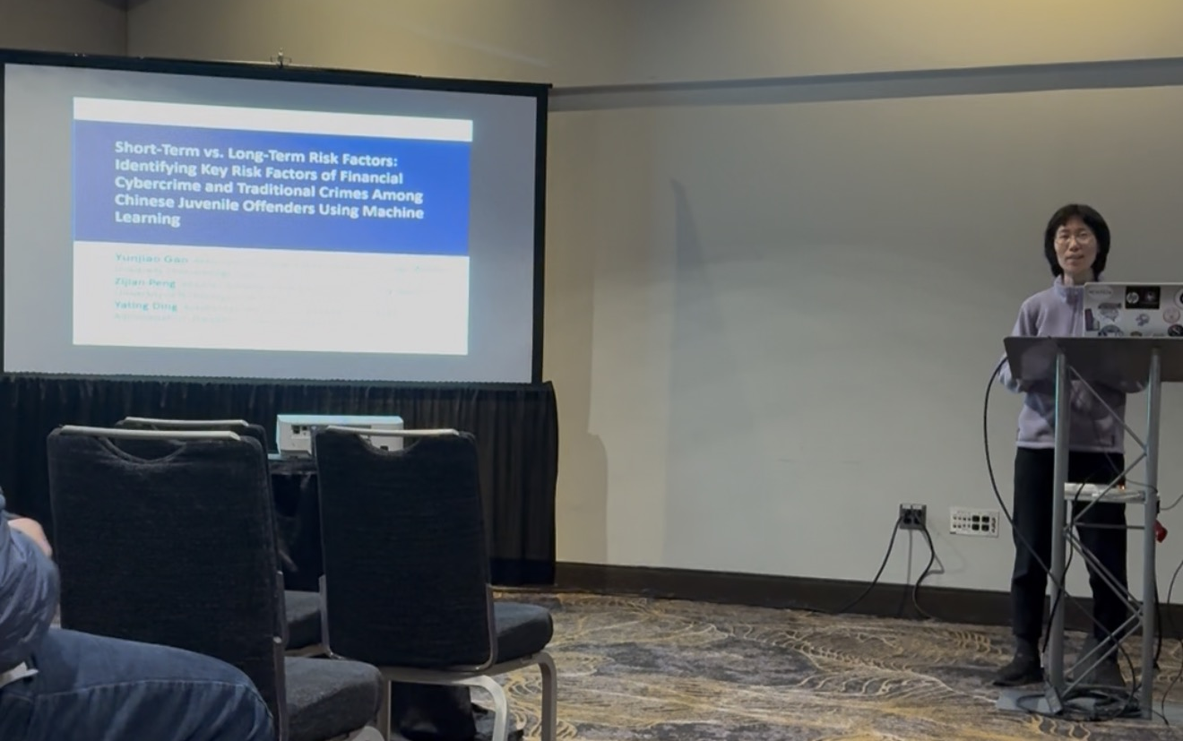 本次会议中,高云娇老师在分论坛“Algorithms, Offenders, and Infrastructures: Mapping the Future of Cybercrime and Digital Protection”作报告,报告题目为《Identifying Key Predictors of Cybercrime and Traditional Crimes Among Juvenile Offenders in China》,该报告由我系彭子剑老师和郑州大学政治与公共管理学院丁雅婷老师共同完成。报告聚焦识别青少年网络犯罪与传统犯罪的关键预测因素,探讨数字社会背景下青少年偏差行为的风险结构与治理启示。