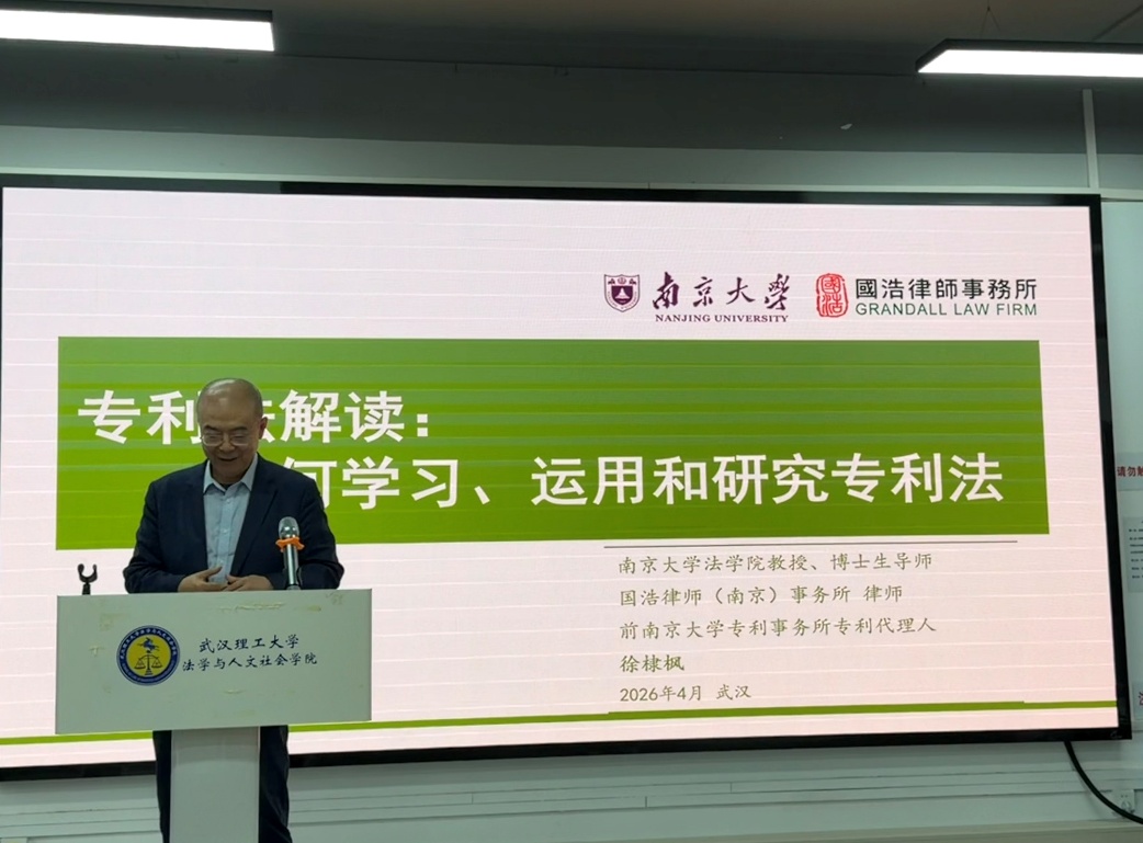 徐棣枫教授以“专利法解读:如何学习、运用和研究专利法”为题,阐释了专利制度的原理、专利权的确立及其面临的挑战。讲座中,徐棣枫教授凭借丰富的教学与实务经验,结合案例对专利制度起源、专利权保护范围、专利审查与诉讼娓娓道来,帮助听众提升学习专利制度的兴趣。现场听众针对专利权宣告无效、商业秘密法律保护等问题与徐棣枫教授进行了充分交流。