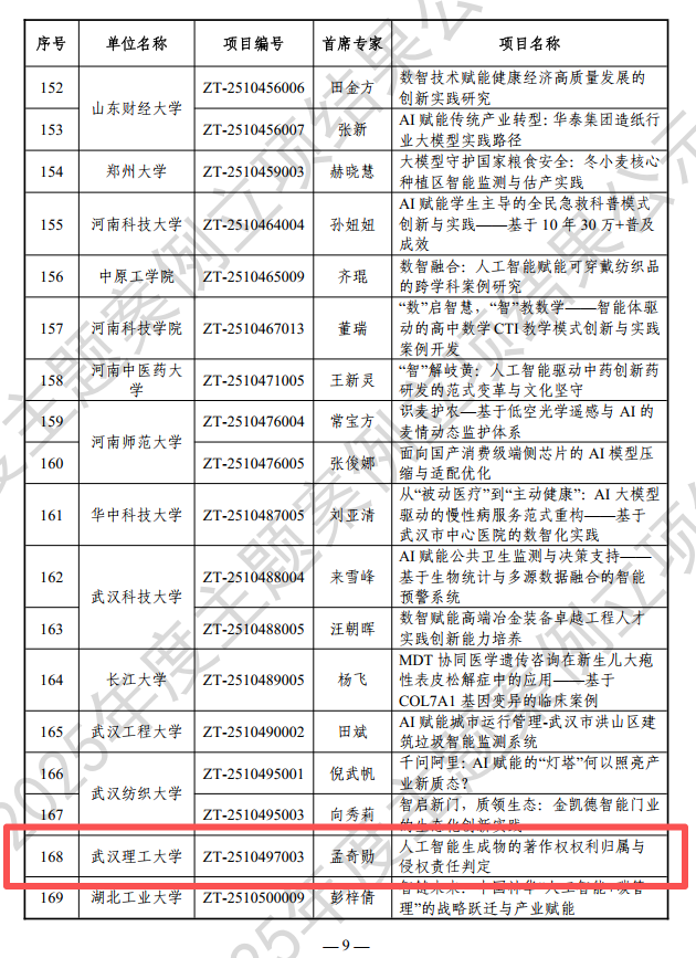 本次主题案例征集工作由教育部学位与研究生教育发展中心组织,聚焦“现代化产业体系”“人工智能+”“文化创新”“走出去”四大主题,经过“单位审核推荐”“专家分组评议”“案例专家委审核”三级评议审核及结果公示,最终从来自340家单位的906个申报项目中评选出立项课题。孟奇勋副教授团队申报的“人工智能+”主题案例,立足于知识产权强国建设与人工智能产业发展实践,该案例入选展现了研究团队在人工智能法律交叉前沿领域的洞察力。