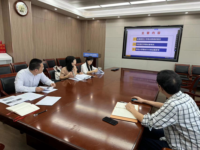 何平副院长首先从全国高校小学期设置调研情况、学校现行学期设置情况、学校小学期试行方案设置思考等三个方面等传达宣贯了夏季“小学期”方案相关情况。