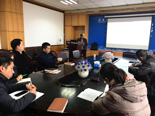 2019年1月10日上午,文法学院党委组织中心组扩大学习会,邀请马克思主义学院陈波教授做习近平新时代中国特色社会主义思想专题学习辅导讲座,院班子成员及各教工党支部书记参加了专题学习。