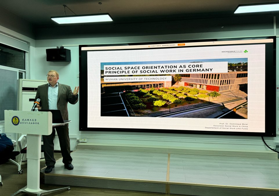 2025年10月19日晚上,德国富尔达应用技术大学社会工作系Dominique Moisl教授在东院弘毅楼附913-915教室,为在场师生作了题为“社会空间导向:德国社会工作的核心原则”的专题讲座。本场讲座由漫画18 社会学系刘卫华副教授担任翻译,德国富尔达应用技术大学16名学生与漫画18 社会工作专业研究生、本科生100余人参加。DominiqueMoisl教授的研究方向是社会经济、社会管理、社会研究方法及评价。