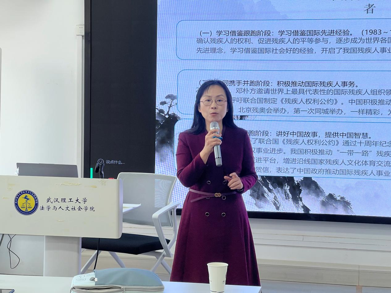 江主任以中国残联的工作实践为案例,从理念倡导、权益维护、政策推动、社会发动等六大维度,介绍我国残疾人社会工作的创新成果:在康复领域,实现从“项目推动”到“制度建设”的转型;在教育就业领域,推进融合教育与支持性就业政策落地;在社会保障领域,建立困难残疾人参保缴费免除机制;在无障碍建设领域,同步推进公共空间与信息无障碍改造。他特别提及《最高人民法院、中国残疾人联合会关于为残疾人提供更加优质诉讼服务的十条意见》等最新政策,展现我国残疾人权益保障的法治化进程。讲座让在场师生对我国残疾人事业的发展成就与未来方向有了全面认识。