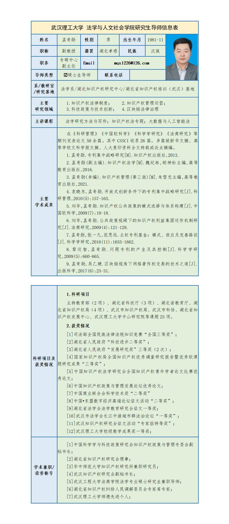 孟奇勋 副教授简介