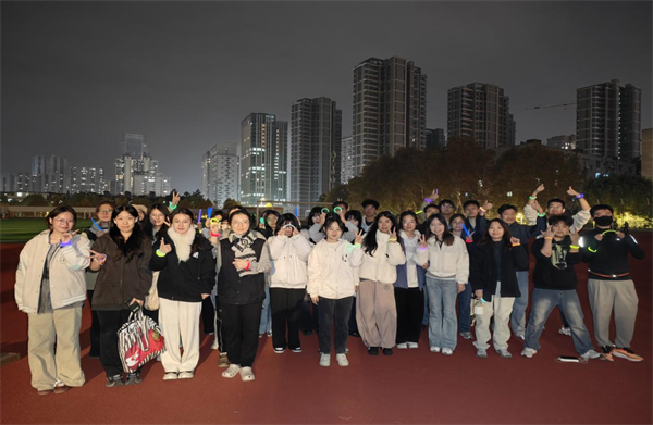为丰富课余生活,传递健康运动理念,搭建同辈互动平台,11月23日晚,学院在西院田径体育场组织开展了“荧光逐梦 青春同行”主题夜跑活动。同学们身着荧光装备,手持荧光棒、佩戴荧光手环,化身夜色中最耀眼的“追光者”,用奔跑诠释热血,用欢笑凝聚同窗情谊。