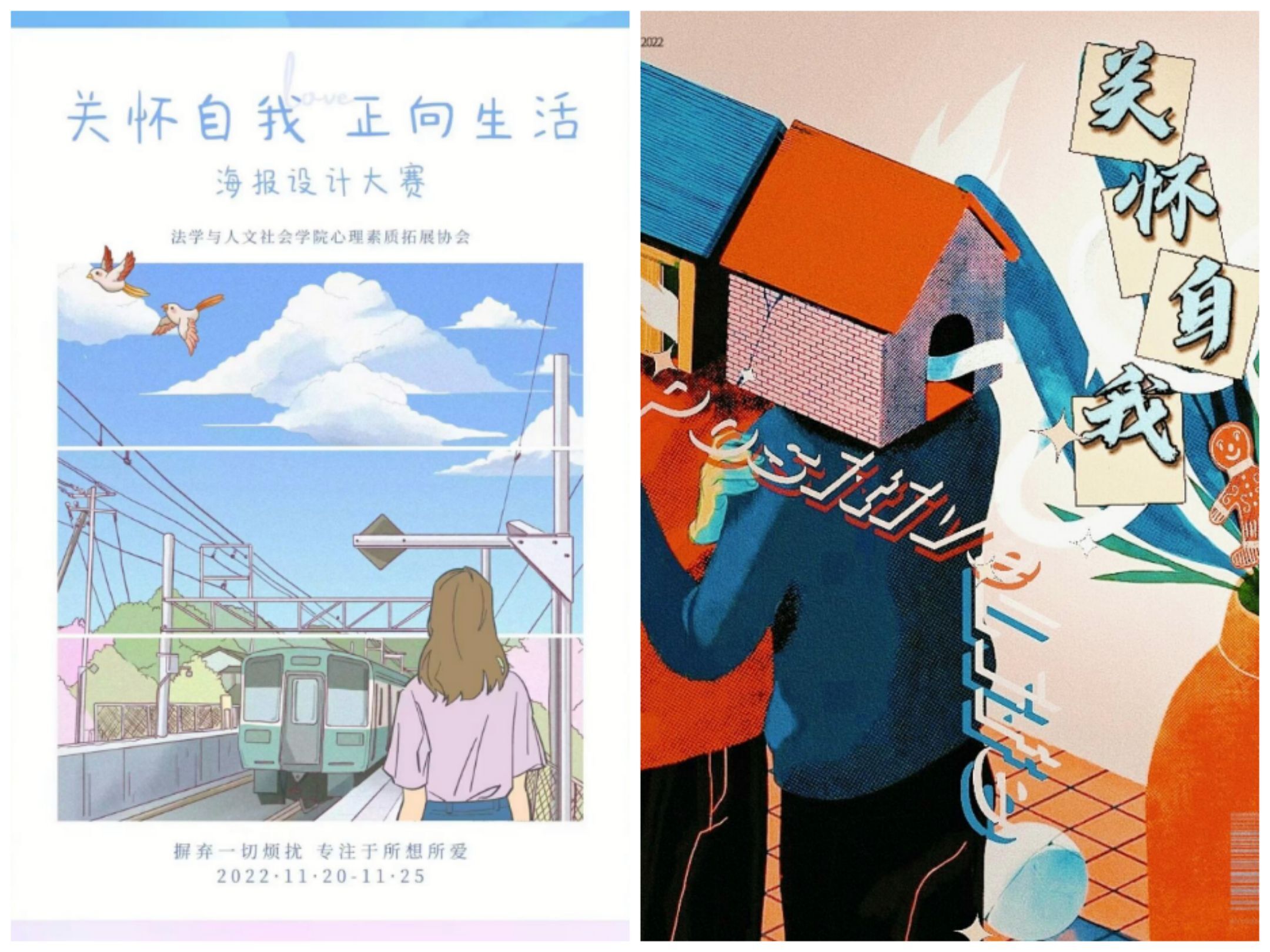 心理海报设计比赛以“关怀自我,正向生活”为主题来号召全体同学创作新心理海报,从而引发他们对于“自我”的思考,帮助他们培养更加积极乐观的生活态度。同时在学习并制作海报的过程中,同学们也学习了心理学相关知识,感受到了心理学的独特魅力,并帮助大家更好地乐纳自我,更加勇敢地面对未来。