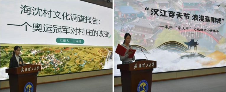 在文化调查报告成果展示环节中,王诗媛、孙雅格两位同学分别聚焦《海沈村文化调查报告:一个冠军对村庄的改变》《福州市长乐区祭祖文化调查》和《襄阳“穿天节”文化调查报告》三个主题,展示了不同地区的文化现象以及撰写文化调查报告的心得体会,也让在场同学们学习到了调查报告的研究撰写方法。