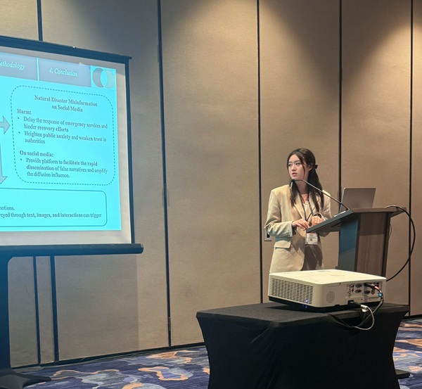 胡慧茹首先结合自身参会经历,系统介绍了NCA的会议结构与主要分会方向,并重点介绍了自己在年会上展示的研究成果《Emotional Contagion in Natural Disaster Misinformation》,该研究聚焦自然灾害虚假信息中的情绪语言使用,探讨其对公众情绪反应与分享行为的影响机制。