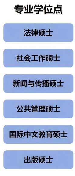 学院现有法学、广告学、网络与新媒体、社会工作、汉语国际教育5个本科专业,1个法学(知识产权)本科辅修专业。法学为国家一流本科专业建设点,新闻传播学、教育学为湖北省重点学科,法学、新闻传播学入选湖北省普通本科高校“荆楚卓越人才”协同育人计划。学院现有法学、教育学、新闻传播学、公共管理学4个一级学科硕士点,设有宪法学与行政法学、民商法学、经济法学、知识产权法学、国际法学、新闻学、传播学、数字出版与智能服务、教育学原理、高等教育学、教育技术学、研究生教育学、教育政策与管理、行政管理、知识产权管理、残疾人事业管理、应急管理和城乡公共治理18个二级学位硕士点,设有法律、新闻与传播、公共管理(MPA)、社会工作、国际中文教育和出版6个专业学位硕士点,共享共建马克思主义理论博士后流动站,同时招收思想政治教育、科技与教育管理、知识产权与产业高质量发展等方向的博士。现有在校学生2296人,其中硕博研究生744人,本科生1432人,预科生120人。