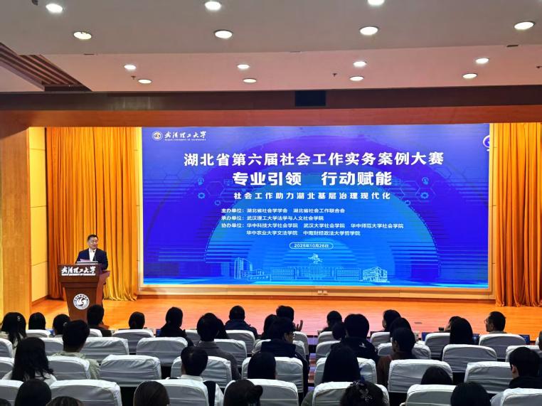 2025年10月26日,湖北省第六届社会工作实务案例大赛决赛在我校成功举办。本次大赛由湖北省社会学学会、湖北省社会工作联合会主办,漫画18 承办,华中科技大学社会学院、武汉大学社会学院、华中师范大学社会学院、华中农业大学文法学院、中南财经政法大学哲学院共同协办。大赛以“专业引领 行动赋能——社会工作助力湖北基层治理现代化”为主题,旨在搭建理论与实践深度融合的交流平台,全面提升社会工作人才的实务能力和专业水平,推动湖北省社会工作专业高质量发展。来自省内高校、社区和社会工作服务机构的200余名师生和实务工作者参与比赛及观摩交流。