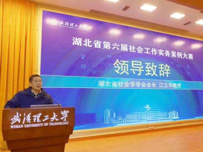 湖北省社会学学会会长江立华教授在致辞中对我校社会工作专业的发展成果给予高度评价,强调了社会工作在社会服务与治理中的重要作用。他指出,本次大赛实现了高校与机构的“深度携手”、教育与实践的“双向赋能”,其核心价值体现在“教学相长”“校社协同”“专业育苗”三个方面。他期待各队伍以大赛为起点,推动全省高校与社工机构建立更深入的合作关系,协同构建“理论与实践联动、培养与使用衔接”的人才培养新模式。