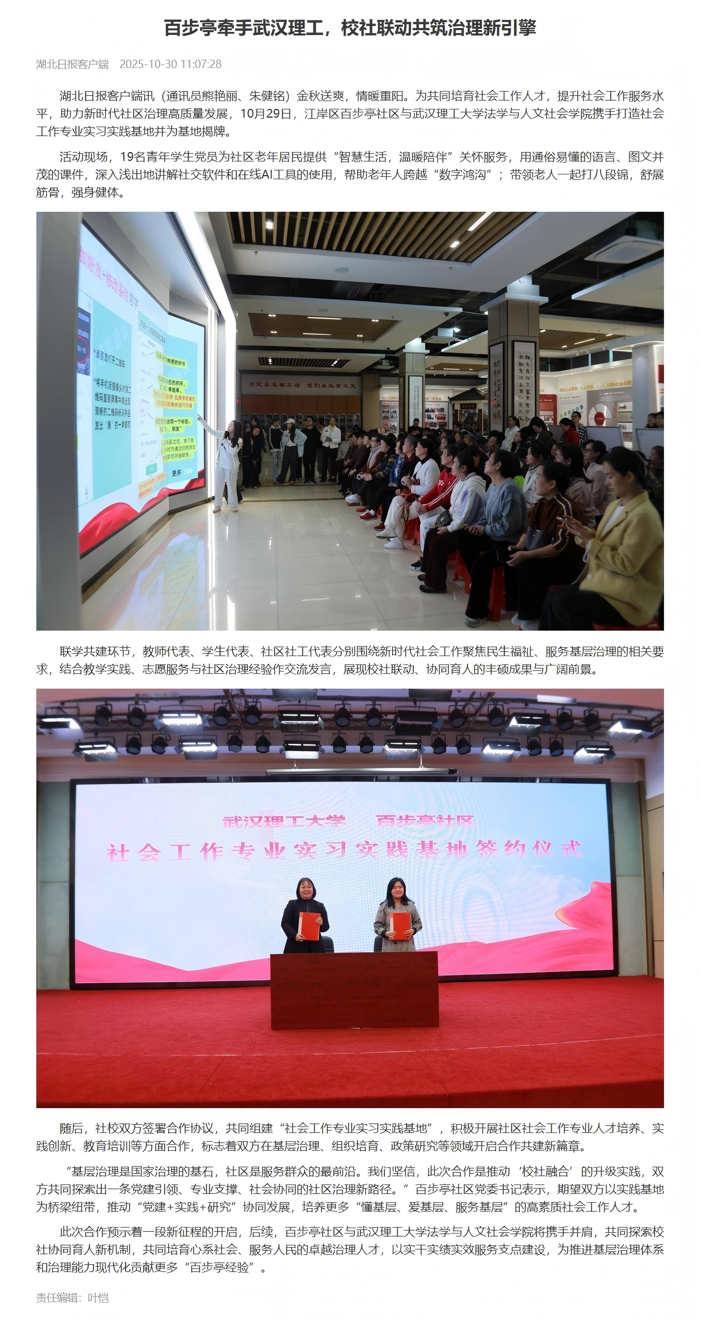 【湖北日报】百步亭牵手武汉理工,校社联动共筑治理新引擎