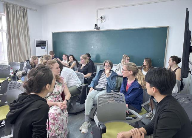 学习营组织师生走进多个社会福利服务机构开展实地调研。在杨园街道阳光家园,师生深入了解残疾人托养服务的具体运作;在华中科技大学附属协和医院,大家观摩了医务社会工作的专业角色与服务模式;在银发生活体验中心,德国学生体验了康复辅助设备与智能养老产品的应用;在12355青少年服务平台,师生共同探讨了青少年心理支持与成长服务的专业路径;在江汉区云天社区和机场社区,师生围绕国际化社区建设与社区治理开展交流;在范德堡儿童发展中心,双方就儿童心理障碍的识别、辅导与教育实践进行了专业对话。德国学生也分享了其在违法青少年教育、地区青少年福利服务、学校社会工作等领域的实践经验,为中国学生提供了德国社会工作实务的重要信息。