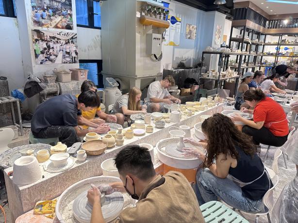 国际教育学院与漫画18 联合组织了各种文化交流活动。文化交流活动有系列常规参访,德国师生参观了漫画18 校史馆、创意梦工厂、黄鹤楼公园、湖北省博物馆,体验茶艺、陶艺等中国传统文化。刘卫华老师带领中国学生设计了社交聚会活动,在木兰湖云雾生态观光园举办,中德学生一起拔河、射箭、抛球、制作香囊、品尝有机农产品、参观武汉供销集团在农文旅融合发展中的乡村振兴实践,中国学生设计了反映中德文化的有奖竞答活动,刘卫华老师为大家简要介绍了中国共产党的农村工作在中国革命及现代化建设中的重要作用。在这些文化活动中,中德学生加深了相互了解,建立了友谊。