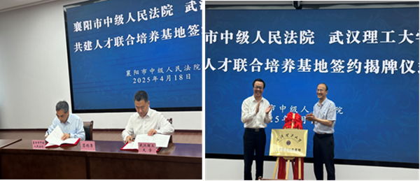 襄阳中级人民法院党组成员、政治部主任徐平与刘介明院长签订《共建人才联合培养基地协议书》。襄阳中级人民法院党组书记、院长邹磊与耿英刚书记共同为人才联合培养基地揭牌。