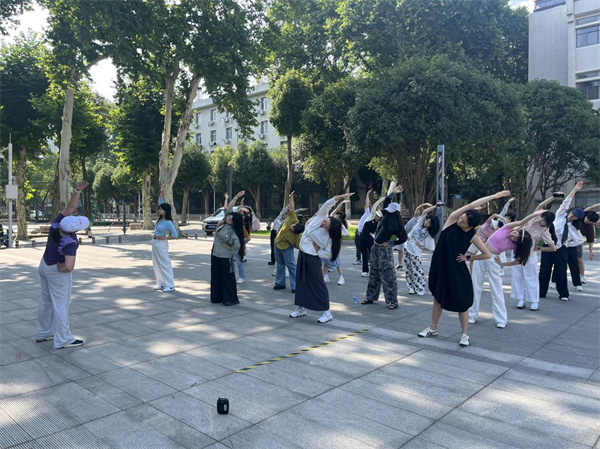 为积极响应学校“大健康”进社区的倡议,切实提升学生身心健康水平,营造积极向上的校园生活风尚,6月5日下午,法学与人文社会学院在桂园学生社区东院运动场承办了“大健康”主题健身操活动。活动邀请到体育学院赵珍老师担任活动教练,学院30余研究生同学热情参与,跃动的身影汇成青春的海洋。