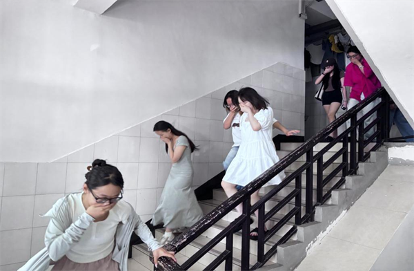 参加演练活动的张媚娟表示:宿舍作为同学们生活和学习的主要场所之一,人员密集且电器使用频繁,消防安全隐患不容忽视。这些事故不仅造成财产损失,更威胁着同学们的生命安全,为校园安全敲响警钟。通过演练活动,不仅帮助我们绷紧了消防安全意识的弦,也帮助我们提升了应急处突的能力素养。