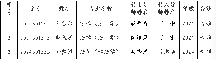根据《漫画18 研究生导师双选与转导师管理规定》(校研字[2019]28号)文件规定,经本人申请、导师同意,漫画18 学位评定分委员会审核通过,同意以下研究生的转导申请。现予以公示,公示时间为2025年10月9日至2025年10月11日。