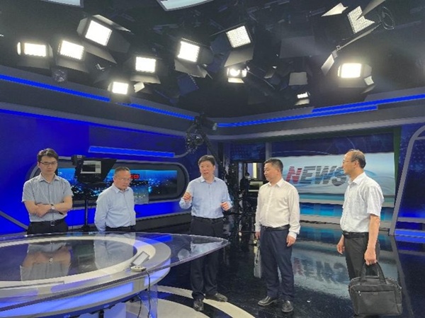 学院院长刘介明、党委书记耿英刚一行参观了襄阳融媒体中心660融媒制作机房、150高清新闻演播室等核心功能区,详细了解了融媒体中心在内容生产、技术应用以及传播矩阵建设方面的相关情况。