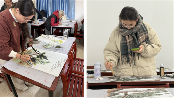 参与同学在专业老师的带领下,从握笔、调墨、用水等基础技法学起,再逐步深入接触花鸟、山水、梅兰竹菊等国画经典题材。授课过程中,老师不仅细致讲解国画的历史与美学内涵,还结合具体题材现场示范运笔力度、线条走向与构图布局方法,帮助同学们在理论与实践的结合中体会国画的独特韵味。